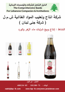 Uncategorized شركة انتاج وتعليب المواد الغذائية ش.م.ل ( شركة جنى لبنان ) فيسبوك X لينكدإن Tumblr بينتيريست Reddit VKontakte مشاركة عبر البريد طباعة